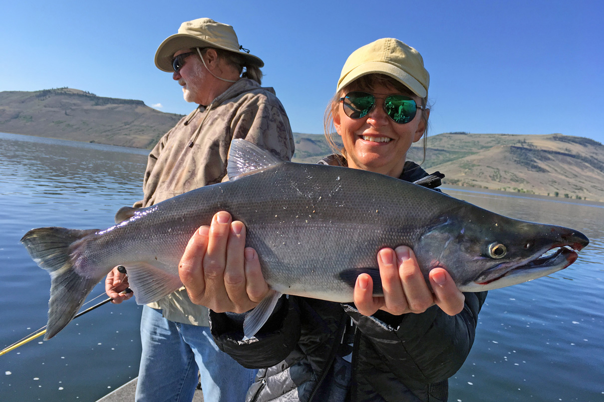 KOKANEE JIGGING: Full day of 6 hours or 1/2 day of 3 hours (August 1st to Mid-September). This is the most sought after fishing window of the year! We use our electronics to hunt down huge schools of kokanee salmon and then vertically jig for them at depths of 50-100'!