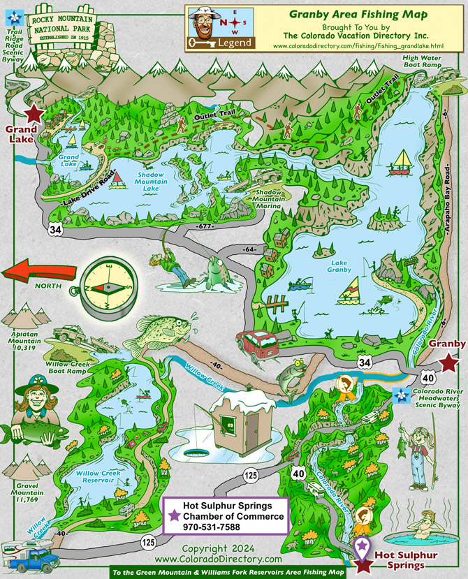 Located just west of Rocky Mountain National Park is the Granby Fishing Area. With the large Lakes and Reservoirs in the area, this is the perfect place to hang out and keep cool during those hot summer days. It's also great for ice fisherman as portable ice fishing shelters are allowed on all Lakes. Over 150 miles of shoreline and thousands of acres of water, this is the perfect place to catch Kokanee Salmon and Brown, Cutbow, Native Cutthroat, Lake, Rainbow, Snake River Cutthroat Trout.